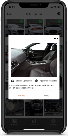 Live QA has seen Auto Imaging grow to be the biggest supplier to Jaguar Land Rover in the UK. In a recent pilot we measured that without live QA on our app, 42% of cars had one image that would fail OEM standards. This equates to millions of pounds worth of vehicles that were not being advertised due to rejected images. This wait would continue until retailers were notified days later, sometimes waiting up to 2 weeks re-image that vehicle after the initial rejection. For this reason, Auto Imaging introduced Real Time QA.